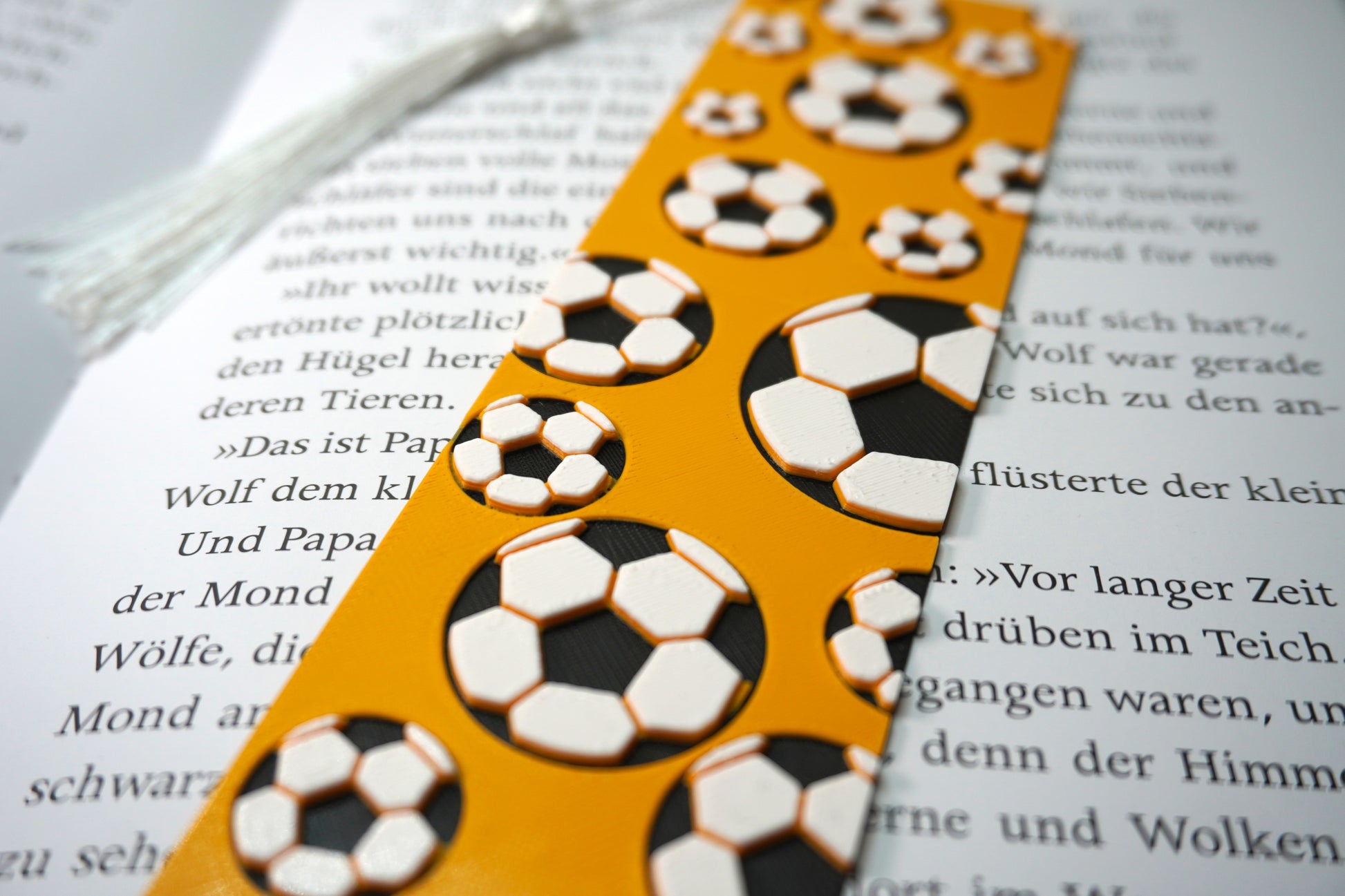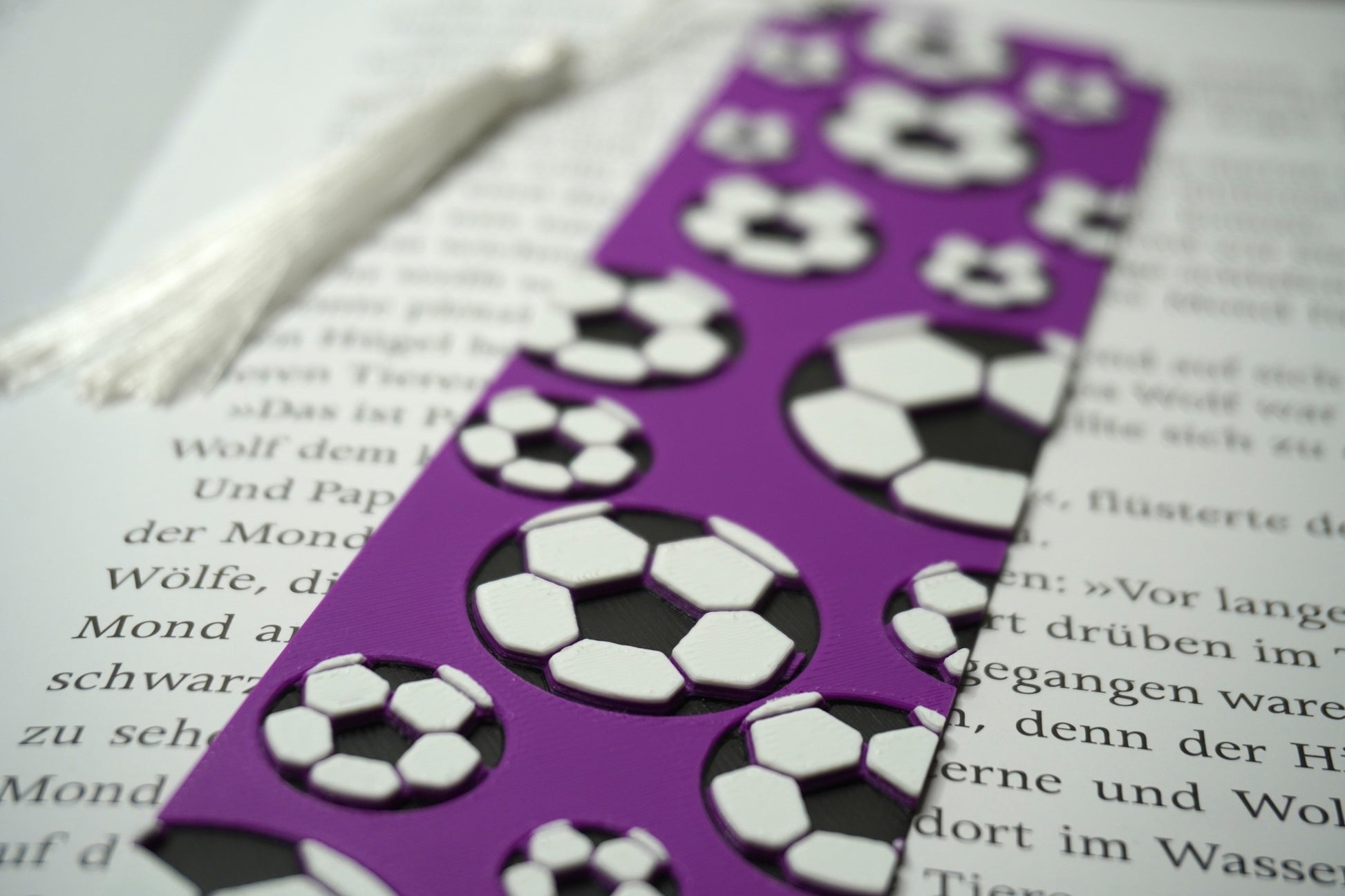Lesezeichen mit Fußball-Muster – In verschiedenen Farben, wahlweise mit oder ohne Quaste