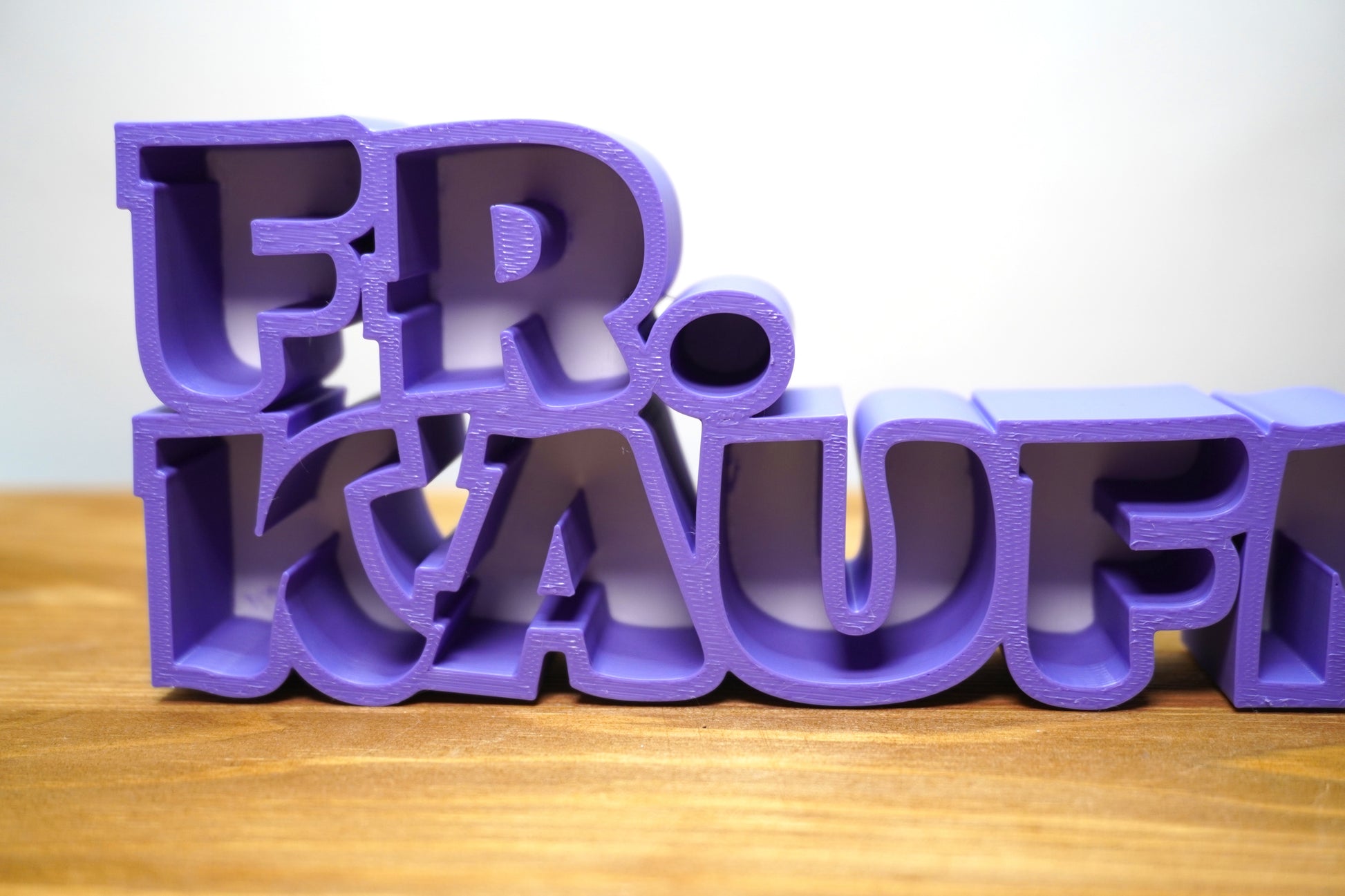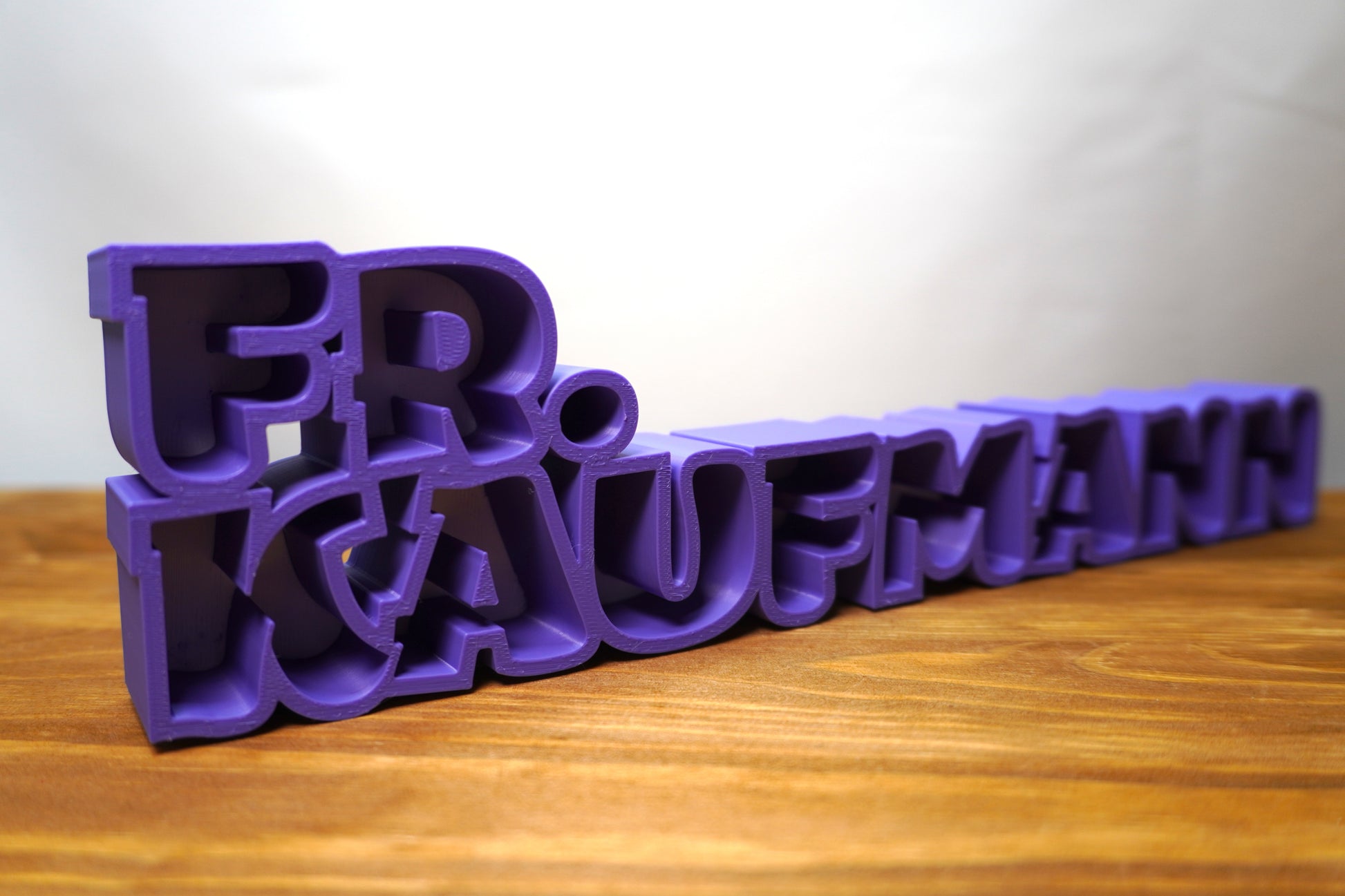 - 3D-Effekt: Der Name wird in einem beeindruckenden 3D-Design dargestellt und sorgt für Aufmerksamkeit.