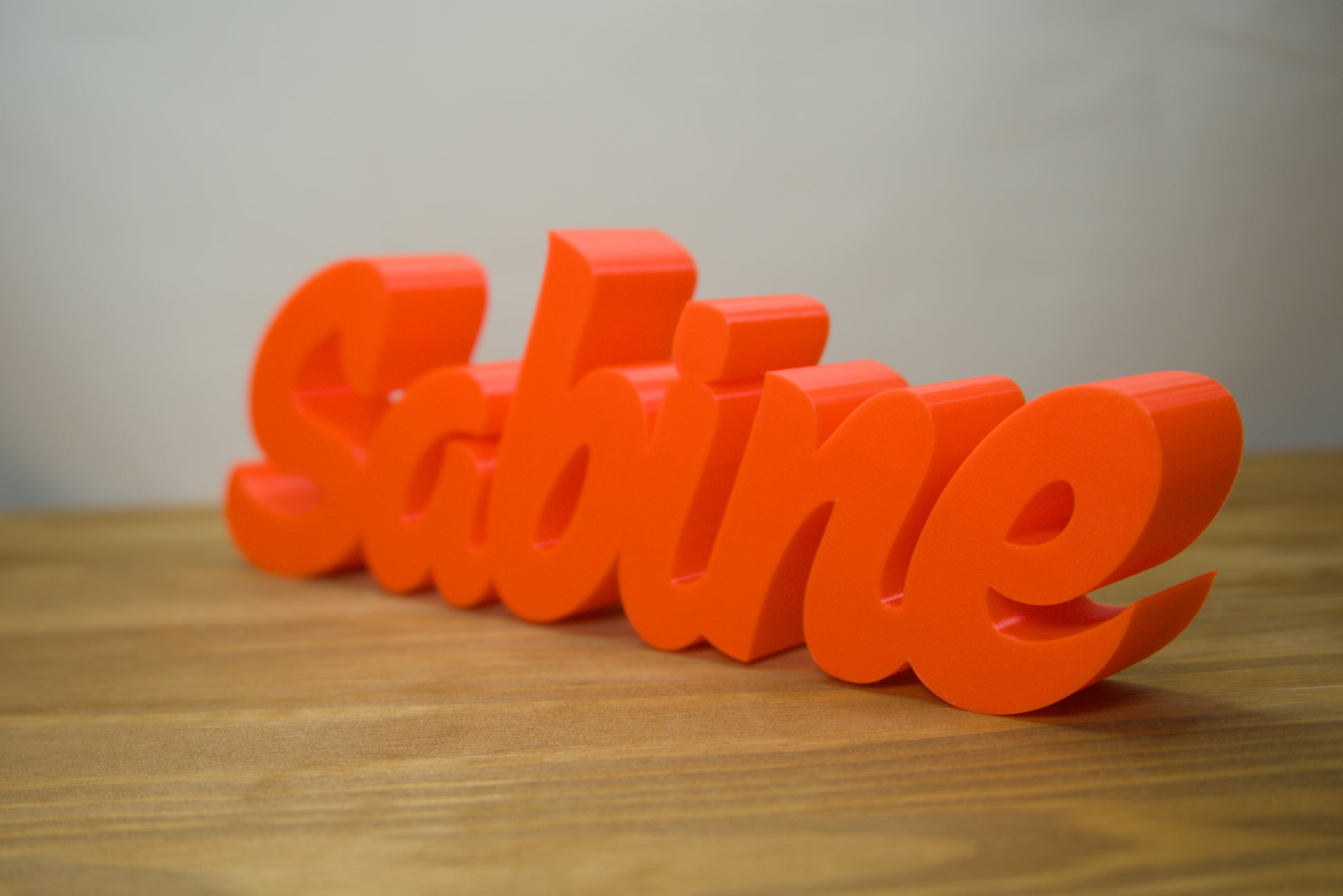 Personalisiertes Namensschild "Sabine" – Farbe für den Namen frei wählbar, ideal für den Schreibtisch